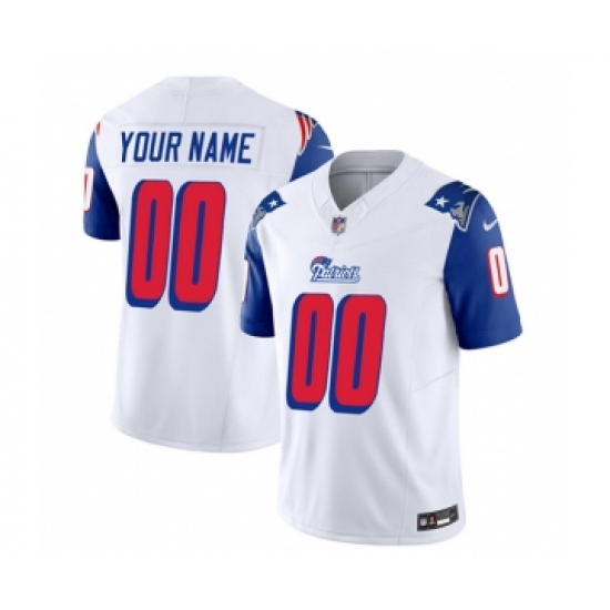 Men's Nike New England Patriots Active Player Custom White Blue 2023 F.U.S.E. Throwback Limited Football Stitched Jersey