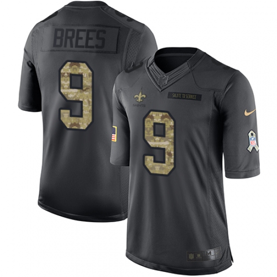 Men's Nike New Orleans Saints #9 Drew Brees Limited Black 2016 Salute to Service NFL Jersey