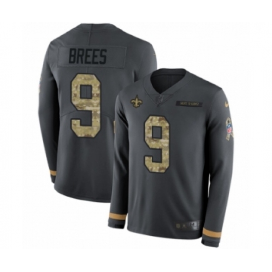 Men's Nike New Orleans Saints #9 Drew Brees Limited Black Salute to Service Therma Long Sleeve NFL Jersey