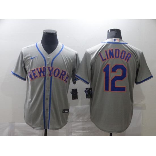 Men's Nike New York Mets #12 Francisco Lindor Gray Jersey