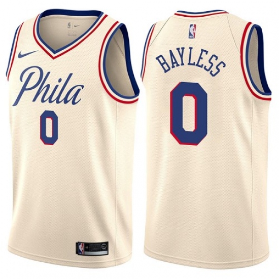 Home>NBA>Philadelphia 76ers>Jerryd Bayless>Men's Nike Philadelphia 76ers #0 Jerryd Bayless Authentic Cream NBA Jersey - City Edition
