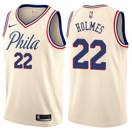 Home>NBA>Philadelphia 76ers>Richaun Holmes>Men's Nike Philadelphia 76ers #22 Richaun Holmes Swingman Cream NBA Jersey - City Edition