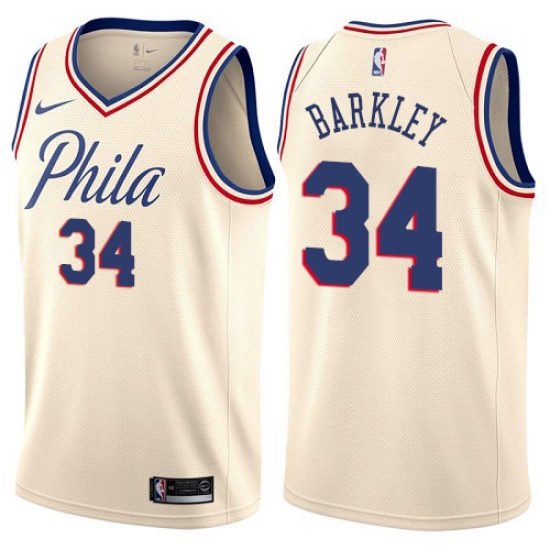Home>NBA>Philadelphia 76ers>Charles Barkley>Men's Nike Philadelphia 76ers #34 Charles Barkley Authentic Cream NBA Jersey - City Edition