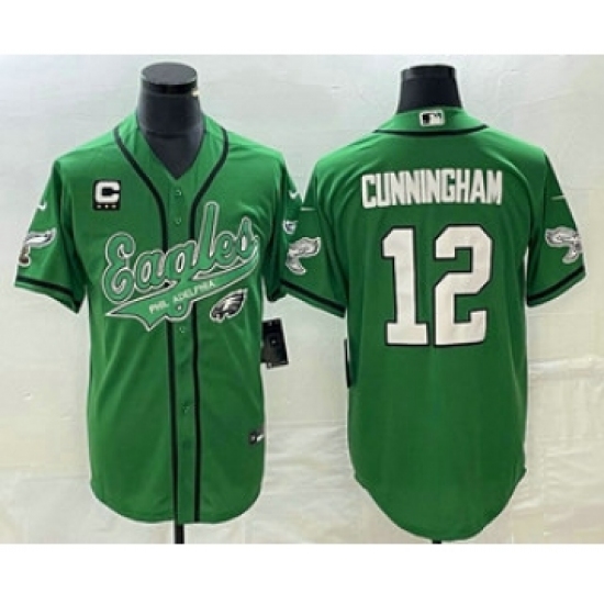>Men's Nike Philadelphia Eagles #12 Randall Cunningham Green C Cool Base Stitched Baseball Jersey