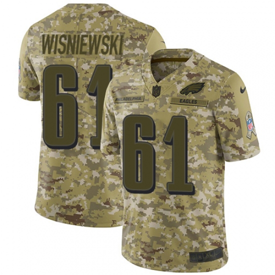 >Men's Nike Philadelphia Eagles #61 Stefen Wisniewski Limited Camo 2018 Salute to Service NFL Jersey