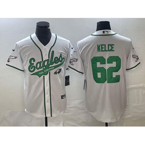 Men's Nike Philadelphia Eagles #62 Jason Kelce White Cool Base Stitched Baseball Jersey