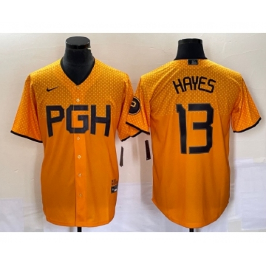 Men's Nike Pittsburgh Pirates #13 KeBryan Hayes Gold 2023 City Connect Stitched Jersey 1