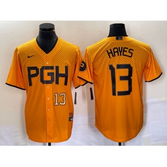 Men's Nike Pittsburgh Pirates #13 KeBryan Hayes Gold 2023 City Connect Stitched Jersey 1