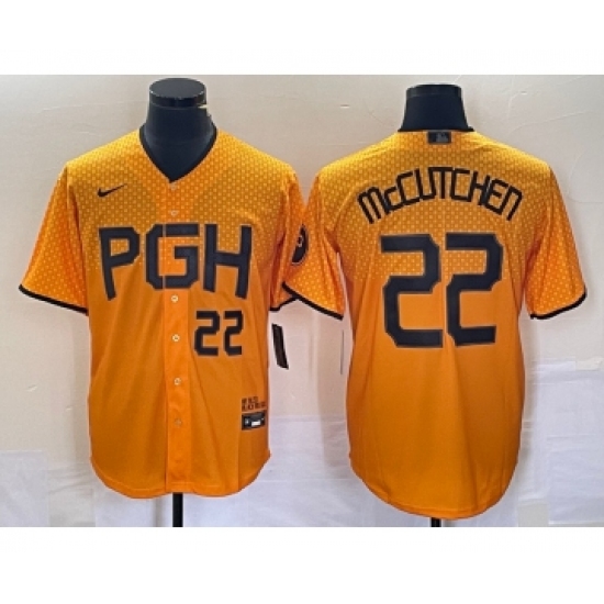 >Men's Nike Pittsburgh Pirates #22 Andrew McCutchen Number Gold 2023 City Connect Stitched Jersey 1