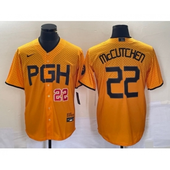 Men's Nike Pittsburgh Pirates #22 Andrew McCutchen Number Gold 2023 City Connect Stitched Jersey 1