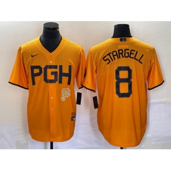 Men's Nike Pittsburgh Pirates #8 Willie Stargell Gold 2023 City Connect Stitched Jersey
