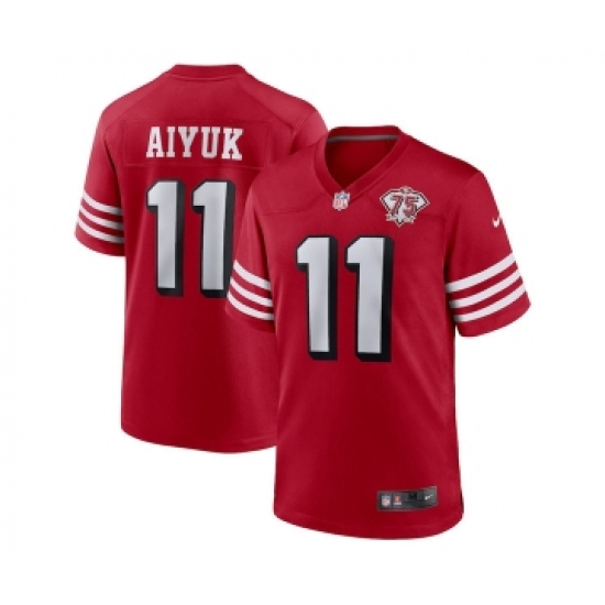 Men's Nike San Francisco 49ers #11 Brandon Aiyuk 2021 Scarlet 75th Anniversary Alternate Football Stitched Game Jersey