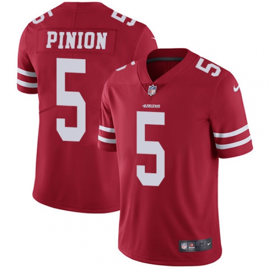 Men's Nike San Francisco 49ers #5 Bradley Pinion Red Team Color Vapor Untouchable Limited Player NFL Jersey