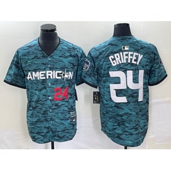 >Men's Nike Seattle Mariners #24 Ken Griffey Number Teal 2023 All Star Cool Base Stitched Jersey1
