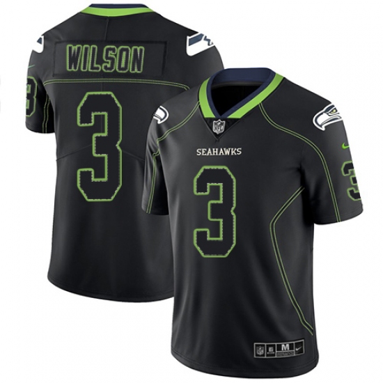>Men's Nike Seattle Seahawks #3 Russell Wilson Limited Lights Out Black Rush NFL Jersey