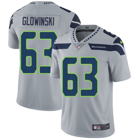 Home>NFL>Seattle Seahawks>Mark Glowinski>Men's Nike Seattle Seahawks #63 Mark Glowinski Grey Alternate Vapor Untouchable Limited Player NFL Jersey