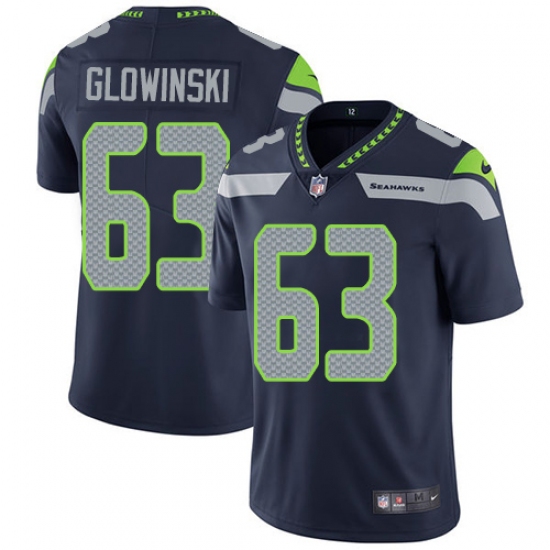Home>NFL>Seattle Seahawks>Mark Glowinski>Men's Nike Seattle Seahawks #63 Mark Glowinski Steel Blue Team Color Vapor Untouchable Limited Player NFL Jersey