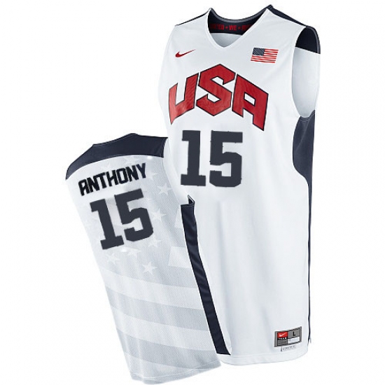 Men's Nike Team USA #15 Carmelo Anthony Authentic White 2012 Olympics Basketball Jersey