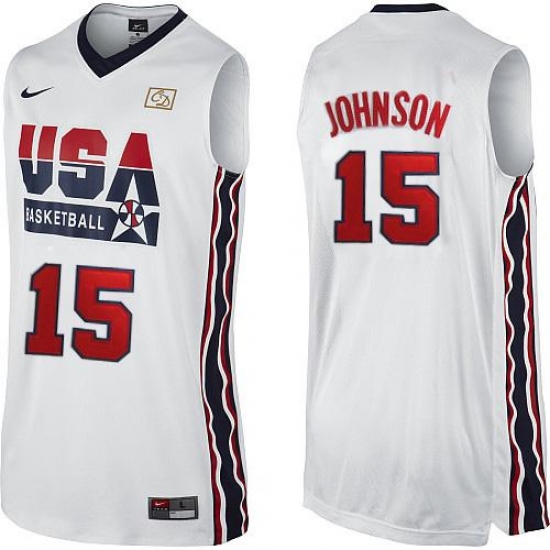 Men's Nike Team USA #15 Magic Johnson Swingman White 2012 Olympic Retro Basketball Jersey