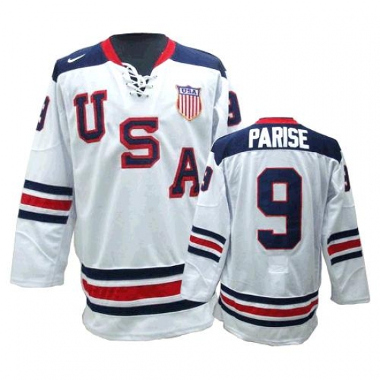 Men's Nike Team USA #9 Zach Parise Authentic White 1960 Throwback Olympic Hockey Jersey