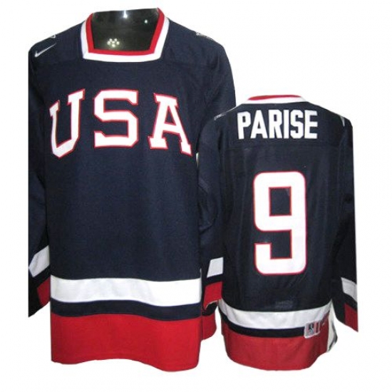 Men's Nike Team USA #9 Zach Parise Premier Navy Blue 2010 Olympic Hockey Jersey
