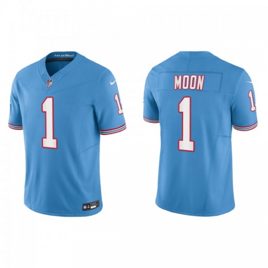 Men's Nike Tennessee Titans #1 Warren Moon Light Blue 2023 F.U.S.E. Vapor Limited Throwback Stitched Football Jersey