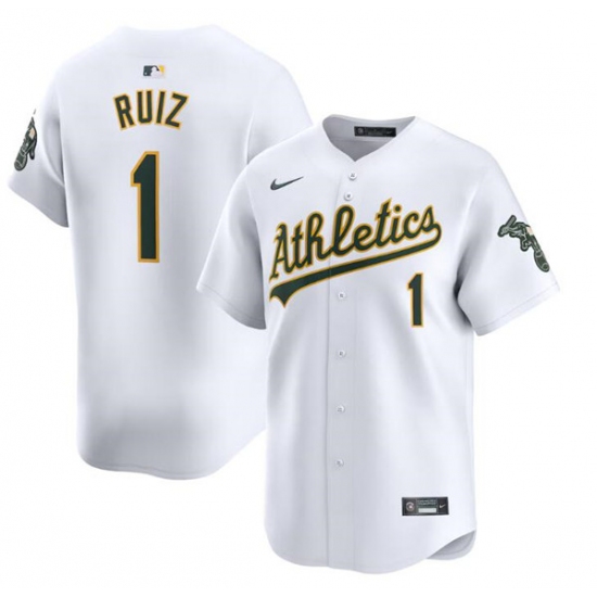 Men's Oakland Athletics #1 Esteury Ruiz White Home Limited Stitched Jersey