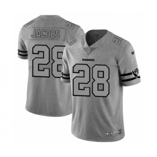 >Men's Oakland Raiders #28 Josh Jacobs Gray Team Logo Gridiron Limited Football Jersey