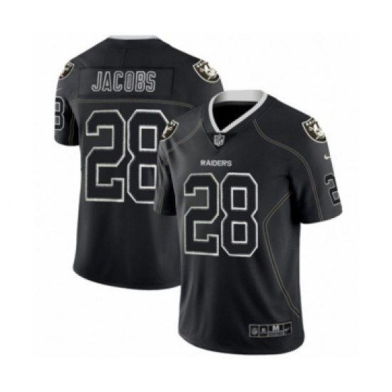 >Men's Oakland Raiders #28 Josh Jacobs Limited Lights Out Black Rush Football Jersey