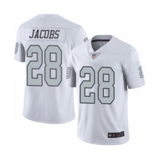 >Men's Oakland Raiders #28 Josh Jacobs Limited White Rush Vapor Untouchable Football Jersey