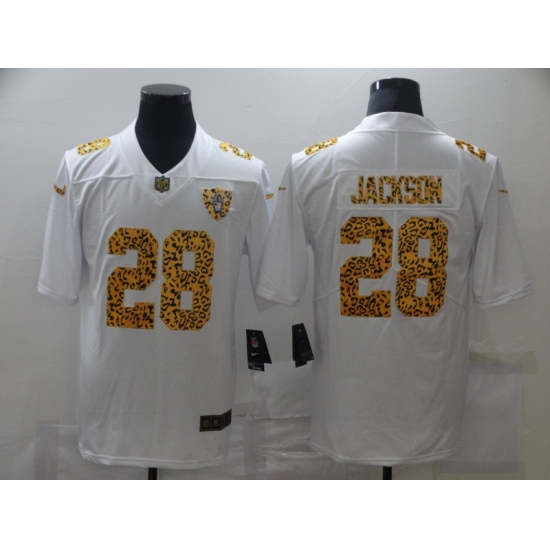 Men's Oakland Raiders #28 Josh Jacobs White Nike Leopard Print Limited Jersey