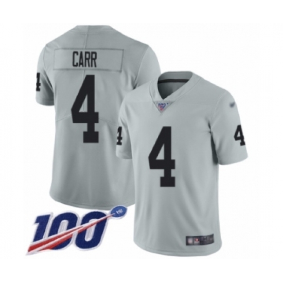 Men's Oakland Raiders #4 Derek Carr Limited Silver Inverted Legend 100th Season Football Jersey