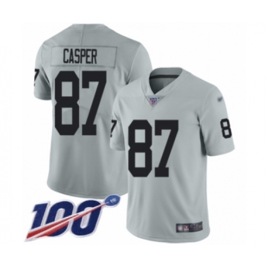 Men's Oakland Raiders #87 Dave Casper Limited Silver Inverted Legend 100th Season Football Jersey
