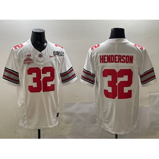 Men's Ohio State Buckeyes #32 TreVeyon Henderson White 2025 CFP Final With National Champions F.U.S.E. Vapor Limited Stitched Football Jersey