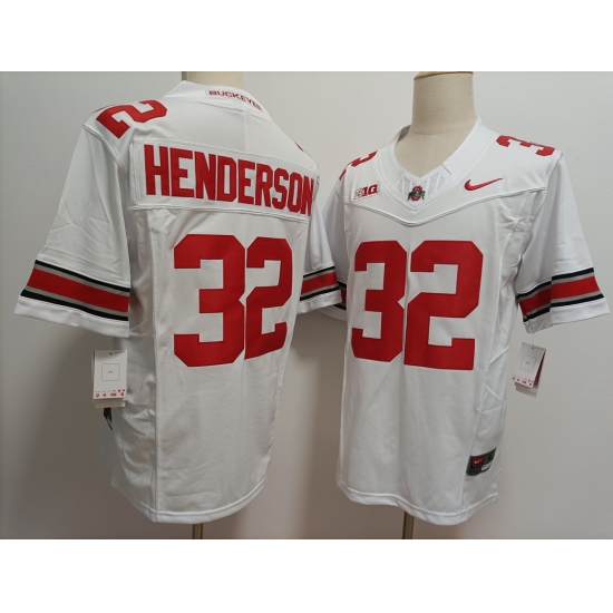 >Men's Ohio State Buckeyes #32 TreVeyon Henderson White FUSE College Football Jersey