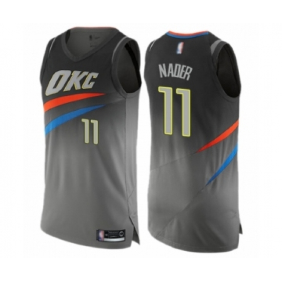 >Men's Oklahoma City Thunder #11 Abdel Nader Authentic Gray Basketball Jersey - City Edition