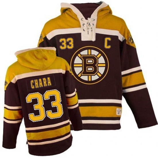 Men's Old Time Hockey Boston Bruins #33 Zdeno Chara Authentic Black Sawyer Hooded Sweatshirt NHL Jersey