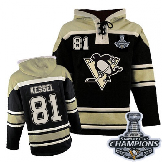 Home>NHL>Pittsburgh Penguins>Phil Kessel>Men's Old Time Hockey Pittsburgh Penguins #81 Phil Kessel Premier Black Sawyer Hooded Sweatshirt 2017 Stanley Cup Champions