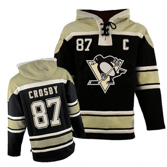 Men's Old Time Hockey Pittsburgh Penguins #87 Sidney Crosby Premier Black Sawyer Hooded Sweatshirt NHL Jersey