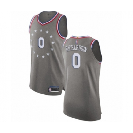 >Men's Philadelphia 76ers #0 Josh Richardson Authentic Gray Basketball Jersey - City Edition