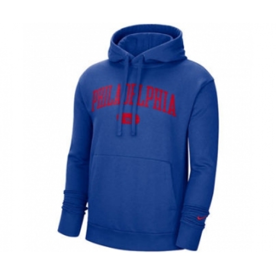 >Men's Philadelphia 76ers 2021 Blue Heritage Essential Pullover Basketball Hoodie