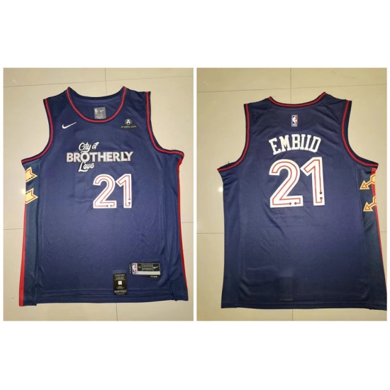 >Men's Philadelphia 76ers #21 Joel Embiid Navy Nike 2023-24 City Edition Swingman Jersey