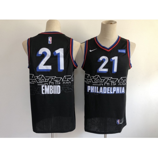 >Men's Philadelphia 76ers #21 Joel Embiid Nike Black 2020-21 Swingman Jersey
