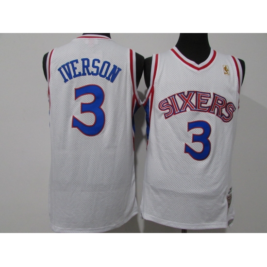 Men's Philadelphia 76ers #3 Allen Iverson Swingman White Hardwood Classics Basketball Jersey