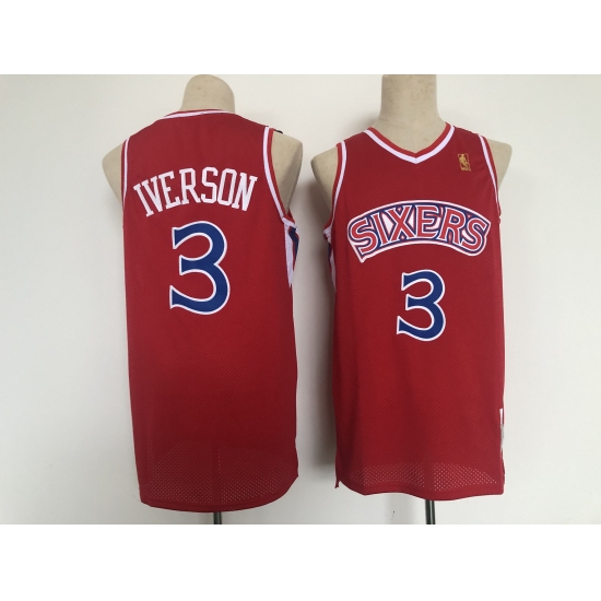 >Men's Philadelphia 76ers #3 Dana Barros Red Throwback Basketbal Jersey
