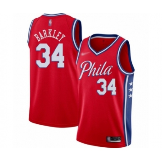 >Men's Philadelphia 76ers #34 Charles Barkley Authentic Red Finished Basketball Jersey - Statement Edition