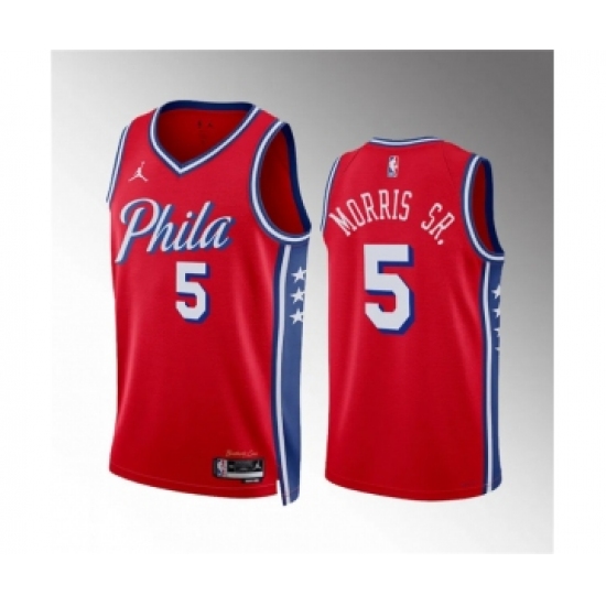 Men's Philadelphia 76ers #5 Marcus Morris Sr Red Statement Edition Stitched Jersey