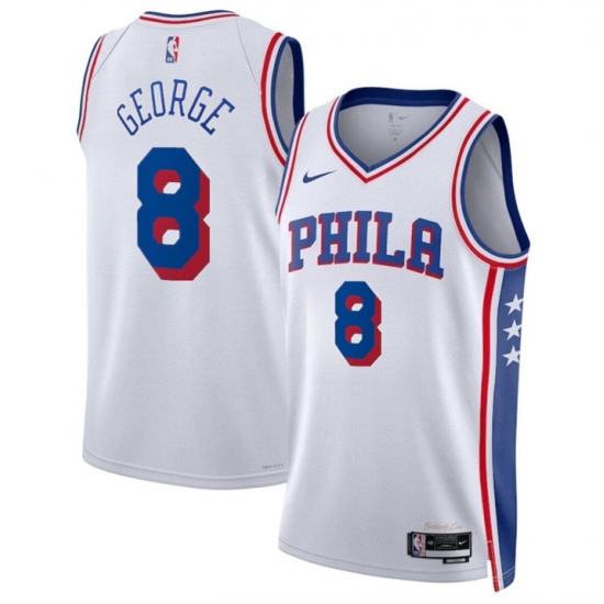>Men's Philadelphia 76ers #8 Paul George White Association Edition Stitched Jersey