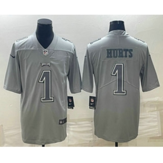 >Men's Philadelphia Eagles #1 Jalen Hurts Gray Atmosphere Fashion Stitched Jersey