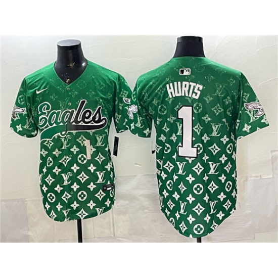 Men's Philadelphia Eagles #1 Jalen Hurts Green With Limited Stitched Baseball Jersey